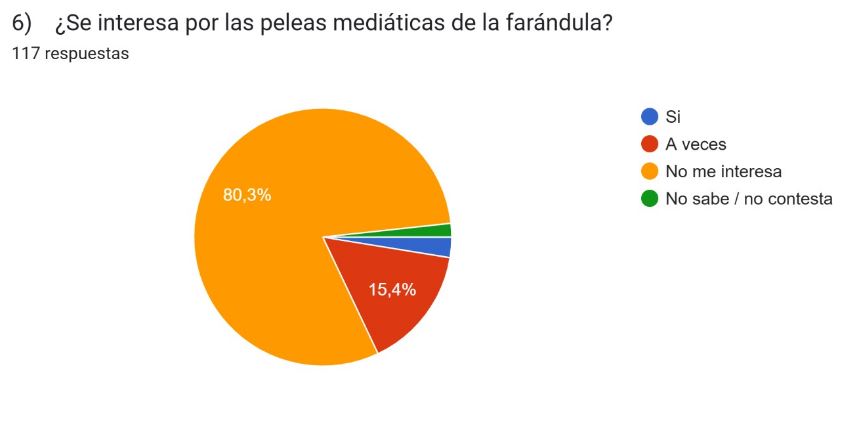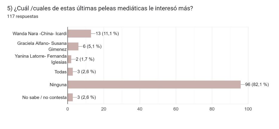 El 80% de los encuestados no se interesa por las peleas mediáticas en los medios y el 96% de ellos no le interesó ninguna de las que se dieron en los medios en las últimas semanas (Wanda Nara -China- Icardi / Alfano- Gimenez / Yanina Latorre- Fernanda Iglesias)