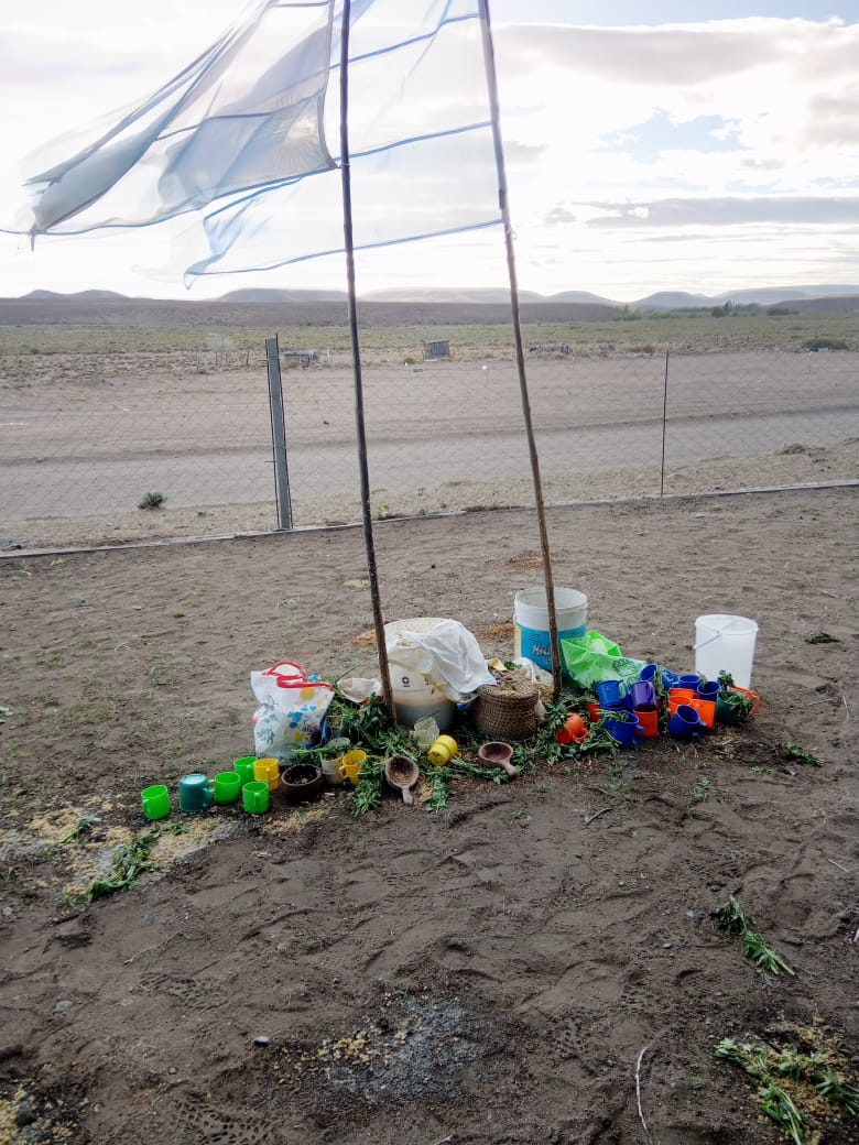 Luego de la ceremonia, nos sentamos en círculo alrededor de un fogón donde se estaquea un cordero que se compartirá sobre una rodaja de pan. Ya son cerca de las 9.30 am. Mientras se conversa y se intercambia. Todo acompañado de mate cocido, pan con chicharrones, tortas fritas y calzones rotos.